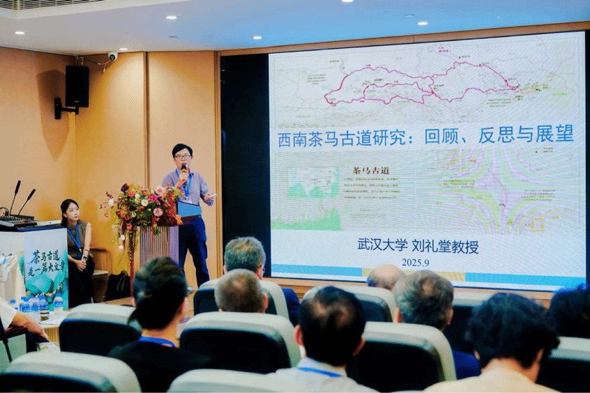 在上午的主旨报告环节,刘礼堂教授以 “西南茶马古道研究:回顾反思与展望” 为题,系统梳理了茶马古道研究的历程与前景。他从 “西南茶马古道研究回顾” 入手,总结了多年来学界在该领域的重要成果;随后以 “‘一带一路’的新视野” ,探讨了茶马古道在推动跨区域文明互动中的现实意义;进而提出 “大地理、大历史、大文明的新思维” ,强调从宏观视角审视古道在中华文明与周边交流中的历史作用;最后提出 “以文献整理为核心、多学科综合的新方法” ,为未来研究指明了方向。